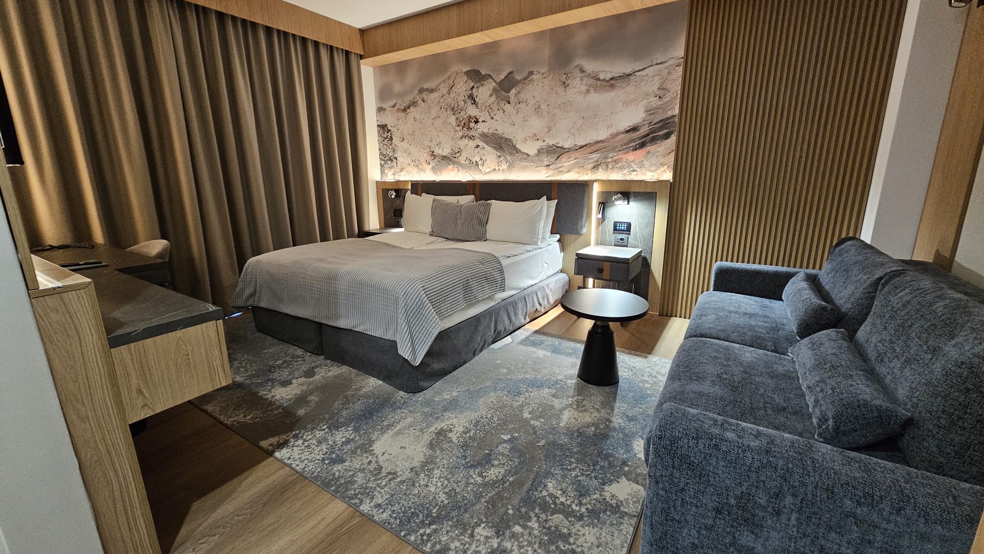 Azuga Ski & Bike Resort Cameră Premium – mai mult spațiu, mai mult confortCamerele Premium sunt spațioase și ideale pentru familii datorită canapelei extensibile. Design modern, spațiu generos și atmosferă perfectă pentru relaxare după o zi pe pârtie.